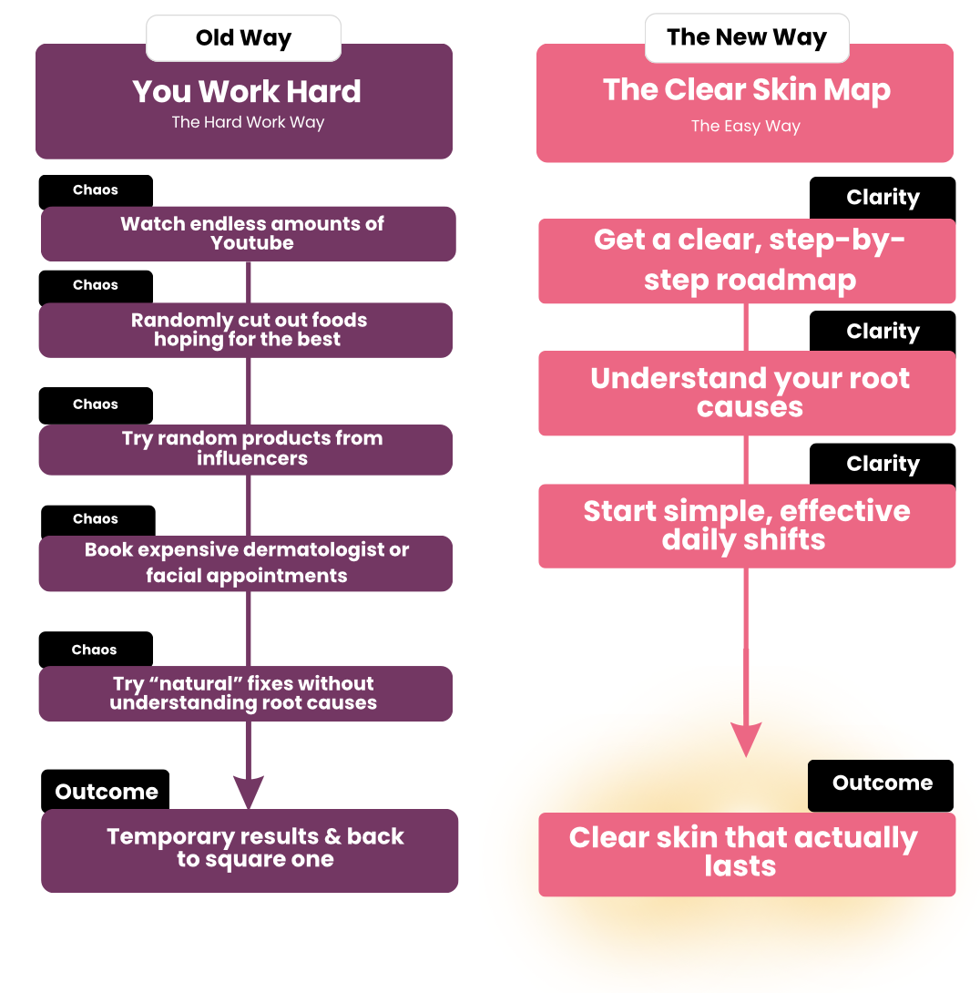 Clear Skin Map is different because it cuts through the noise. Instead of throwing products at the problem or chasing surface-level fixes, it gives you a clear, root-cause roadmap—without the overwhelm. You don’t need a big budget, fancy routines, or tons of trial-and-error. Just a straightforward guide that helps you finally understand why your skin is breaking out and what to do about it.