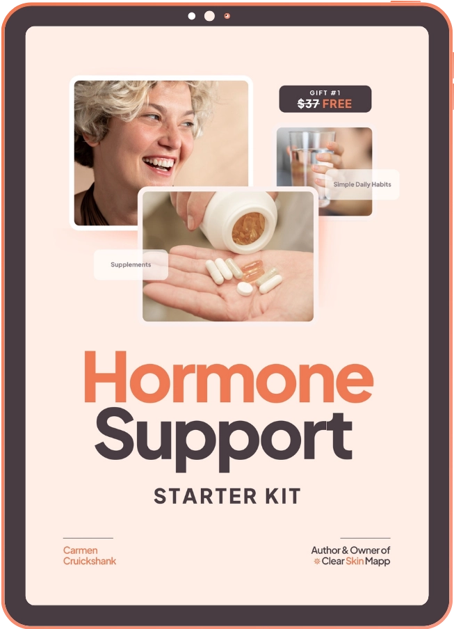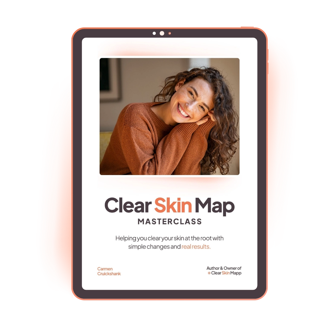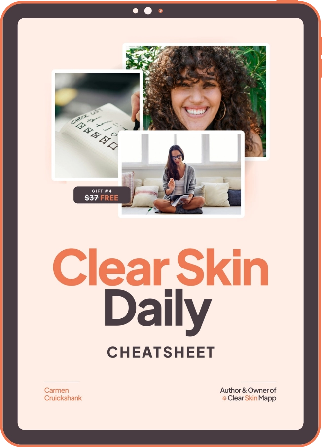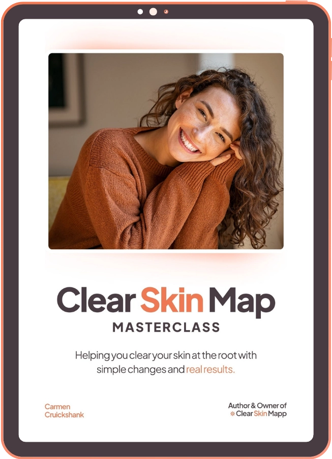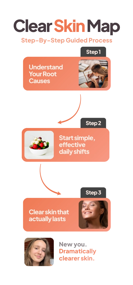 The Clear Skin Map is a 60 page digital guide that walks you through finding which of the 3 internal triggers is behind your breakouts and gives you the exact protocol to calm it at the source.