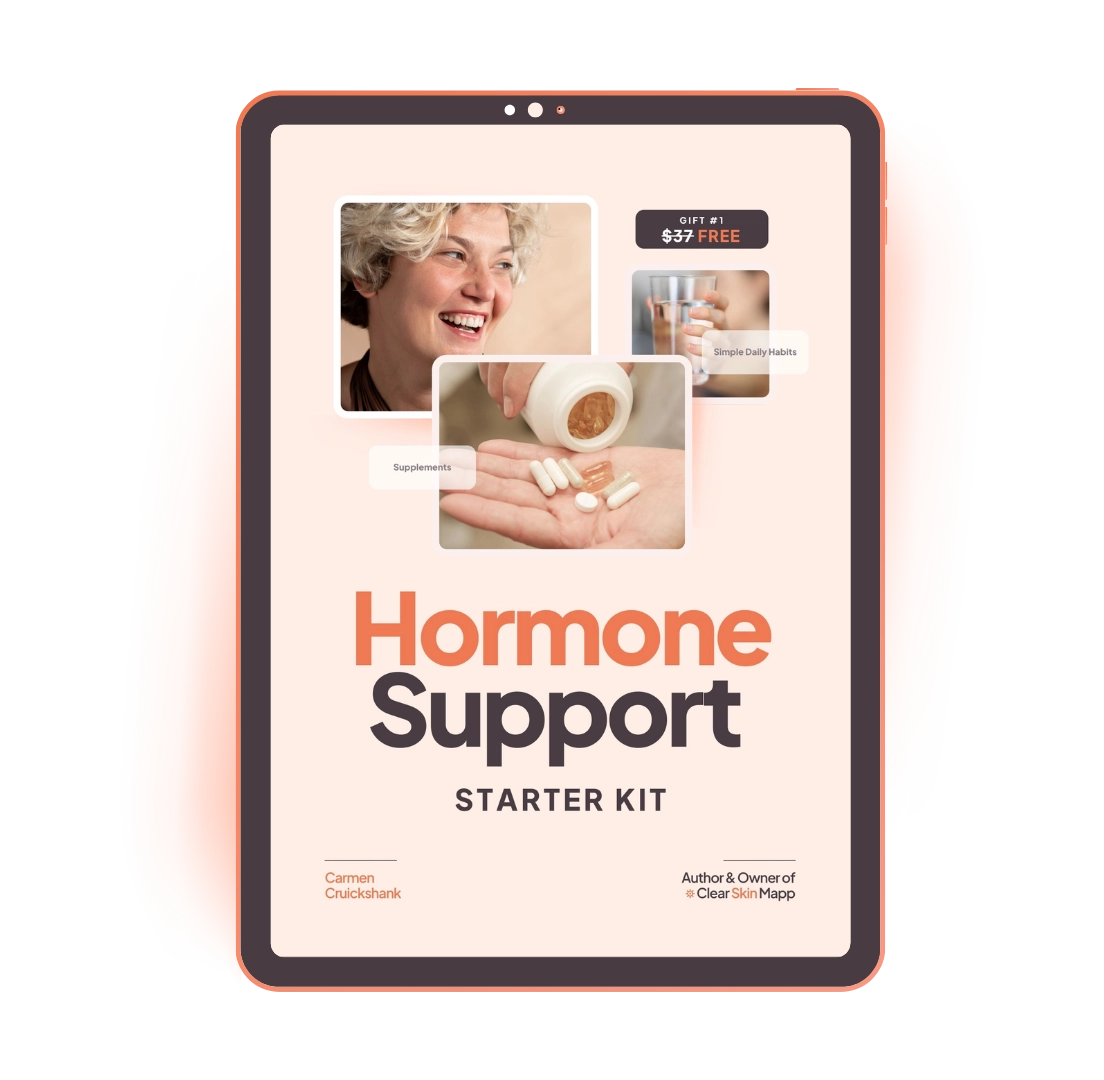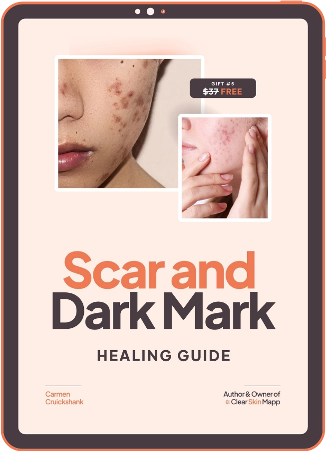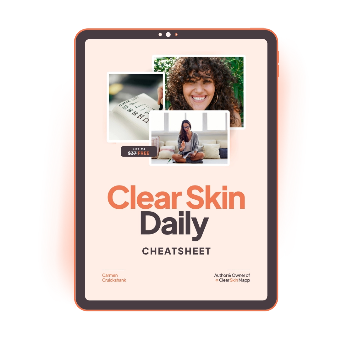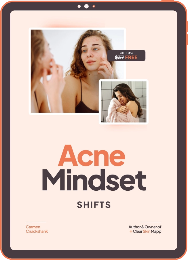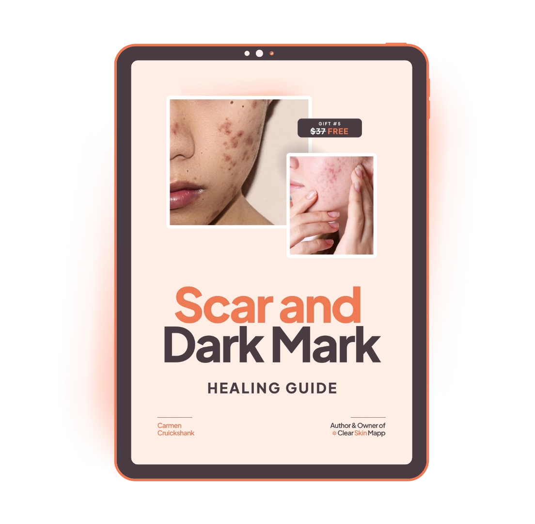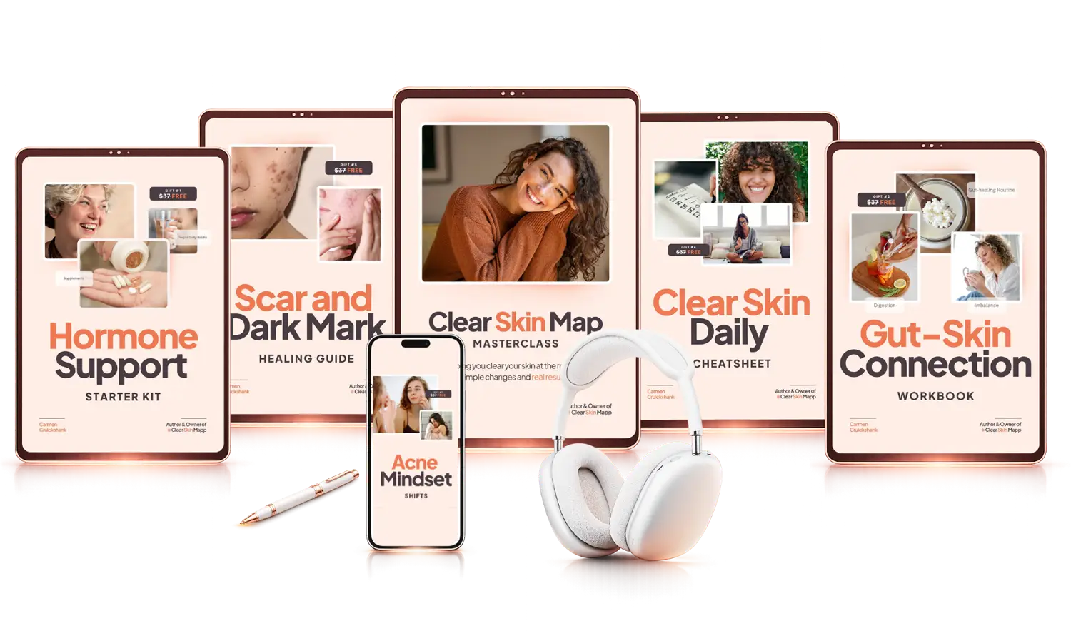 Inside you'll also get a hormone support cheatsheet, a gut repair workbook, a daily habits guide, a scar fading protocol, and the mental reframes I used to stop hating my reflection long enough to actually heal.