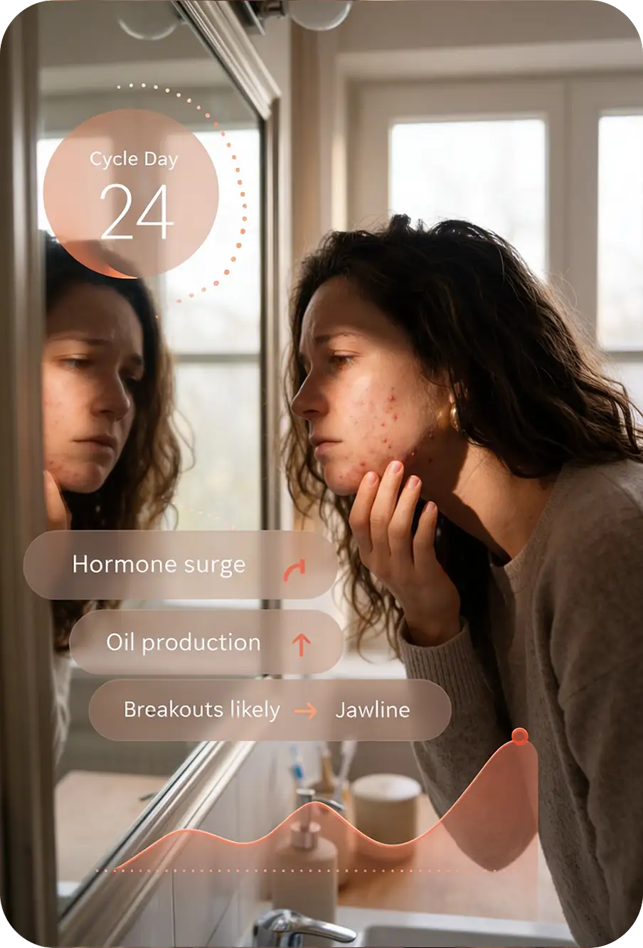 Every month your body floods with a hormonal surge you can't control. That surge drives oil deep beneath the surface where nothing you apply can touch it. Pores clog from the inside out. And those painful jawline clusters bloom right on schedule.