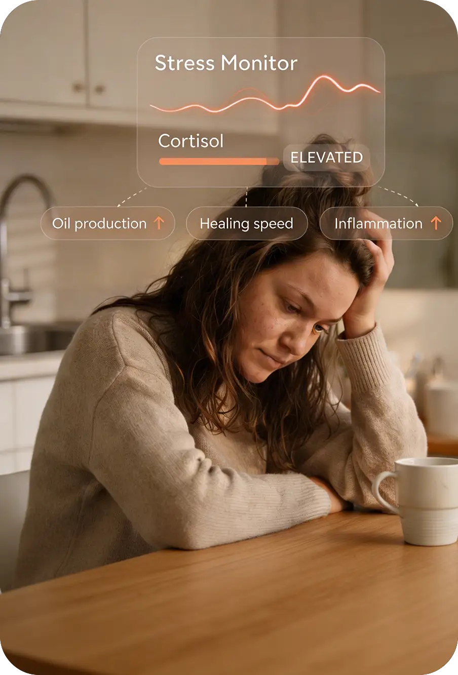 Your body keeps flooding itself with cortisol long after you stopped feeling anything. Healing slows to a crawl while oil production quietly spikes without permission. Your skin stays locked in a low grade war it never agreed to.